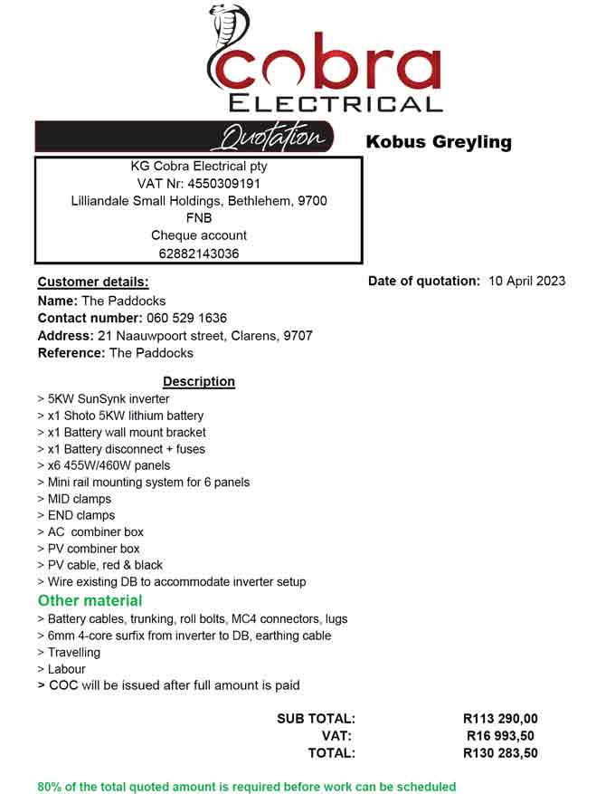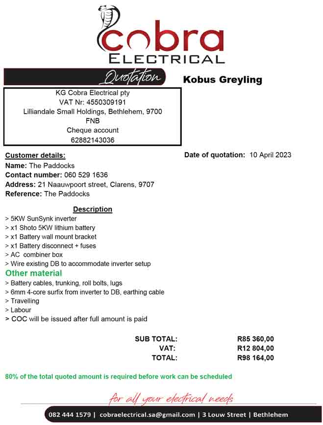 They all come with good references, but the Paddocks Body Corp is not taking responsibility for the supplier’s performance.